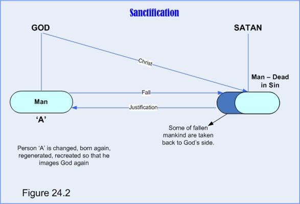 But what happens now to the sinner who has been justified, brought back to God (person 'A' in Figure 24.1)? Does he remain dead in sin? Now that he has been restored to God‘s side, is he still inclined to image the Devil?