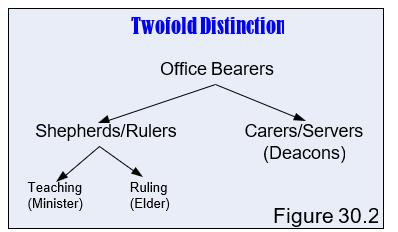 The first part of the answer lies in the apostle‘s words in 1 Timothy 5:17: ''Let the elders who rule well be counted worthy of double honor, especially those who labor in the word and doctrine.'' All elders (= pastors) rule and teach, but for some their primary task is to teach, while the primary task for others is to rule. We are accustomed to calling the teaching elder a minister, and the ruling elder an elder. See Figure 30.2.